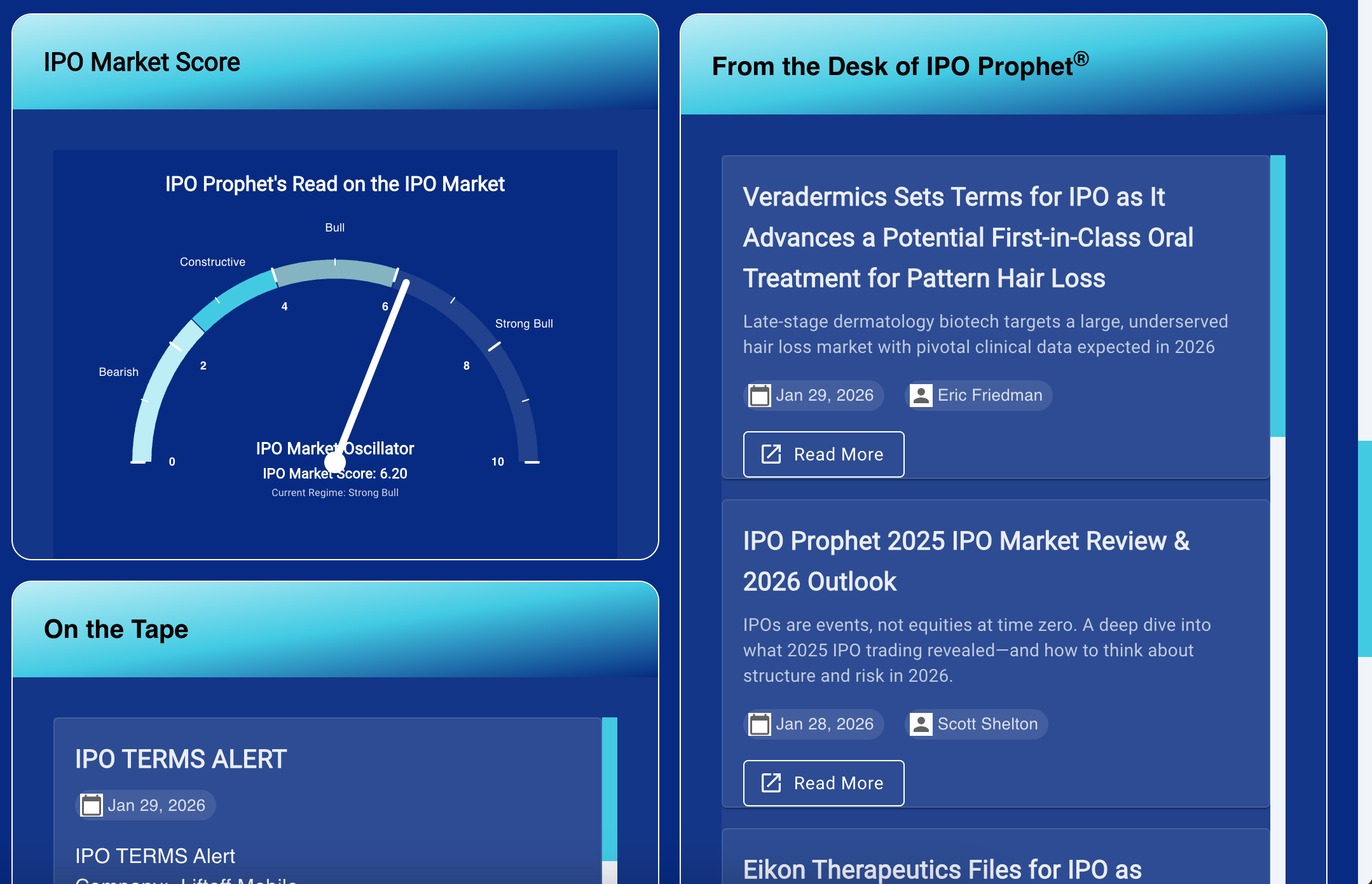 IPO Prophet® is a real-time media and technology platform designed by hedge fund veterans to give investors an edge when investing in Initial Public Offerings. Using institutional-grade data and proprietary algorithms, we deliver actionable, day-of-issuance signals that help you know which IPOs to pursue—and which to avoid. Alongside live signals, IPO Prophet® provides comprehensive IPO ratings, in-depth research, and institutional-level insights, making it an essential tool for both beginners and seasoned professionals.